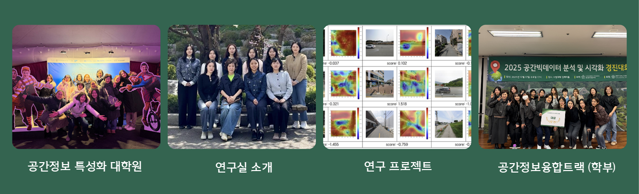 2025년 공간빅데이터 분석 및 시각화 경진대회가 아래와 같이 개최됩니다.관심있는 학생들의 많은 신청과 참여 바랍니다.□ 목 적 : QGIS, 구글, ArcGIS, CartoDB 등 공간정보 소프트웨어를 이용하여 공간 빅데이터를 분석하고 시각화하여 공간정보 활용능력 함양□ 일 시 : 2025년 12월 17일 (수) 17:00□ 장 소 : 교육관 B동 김애마홀□ 공모자격 : 사회과교육과 재학생(휴학생, 졸업생 불가)□ 공모내용: QGIS, 구글, ArcGIS, CartoDB 등 공간정보 소프트웨어를 이용하여 공간데이터를 분석하고 시각...